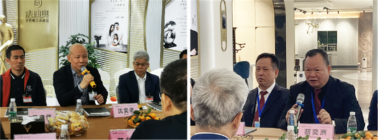 法迪奥不锈钢艺术厨柜创始人沈董、董事长助理邓红梅女士、品牌部总监林培婉女士等公司高层,协同潮州商会领导,与潮州市湘桥区工商联会员企业的负责人举行座谈。