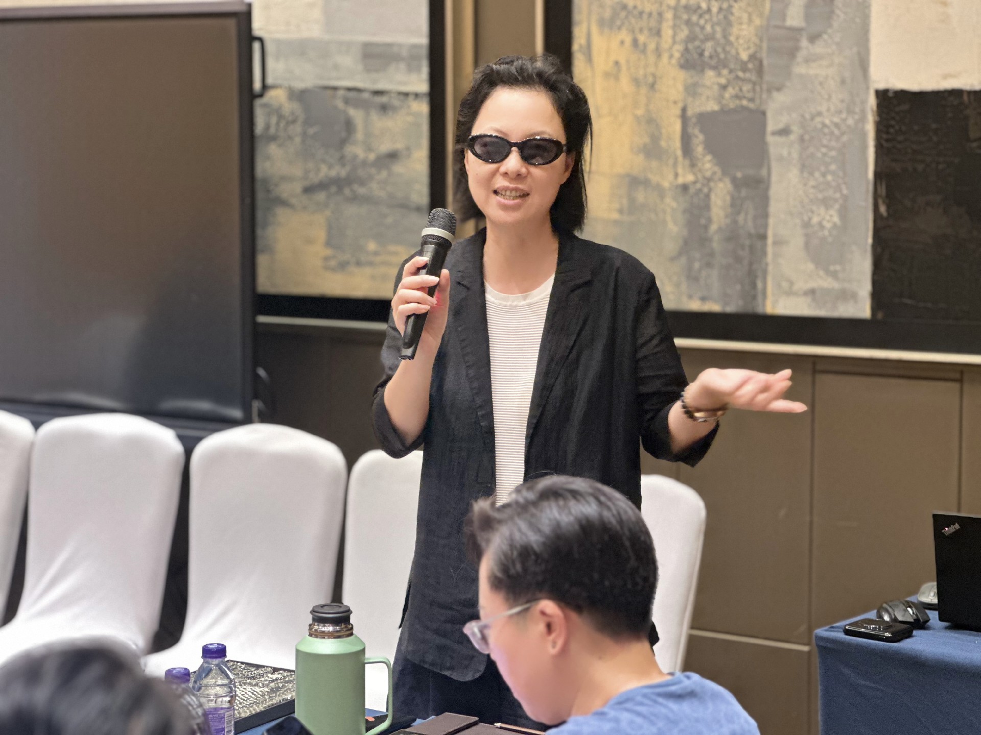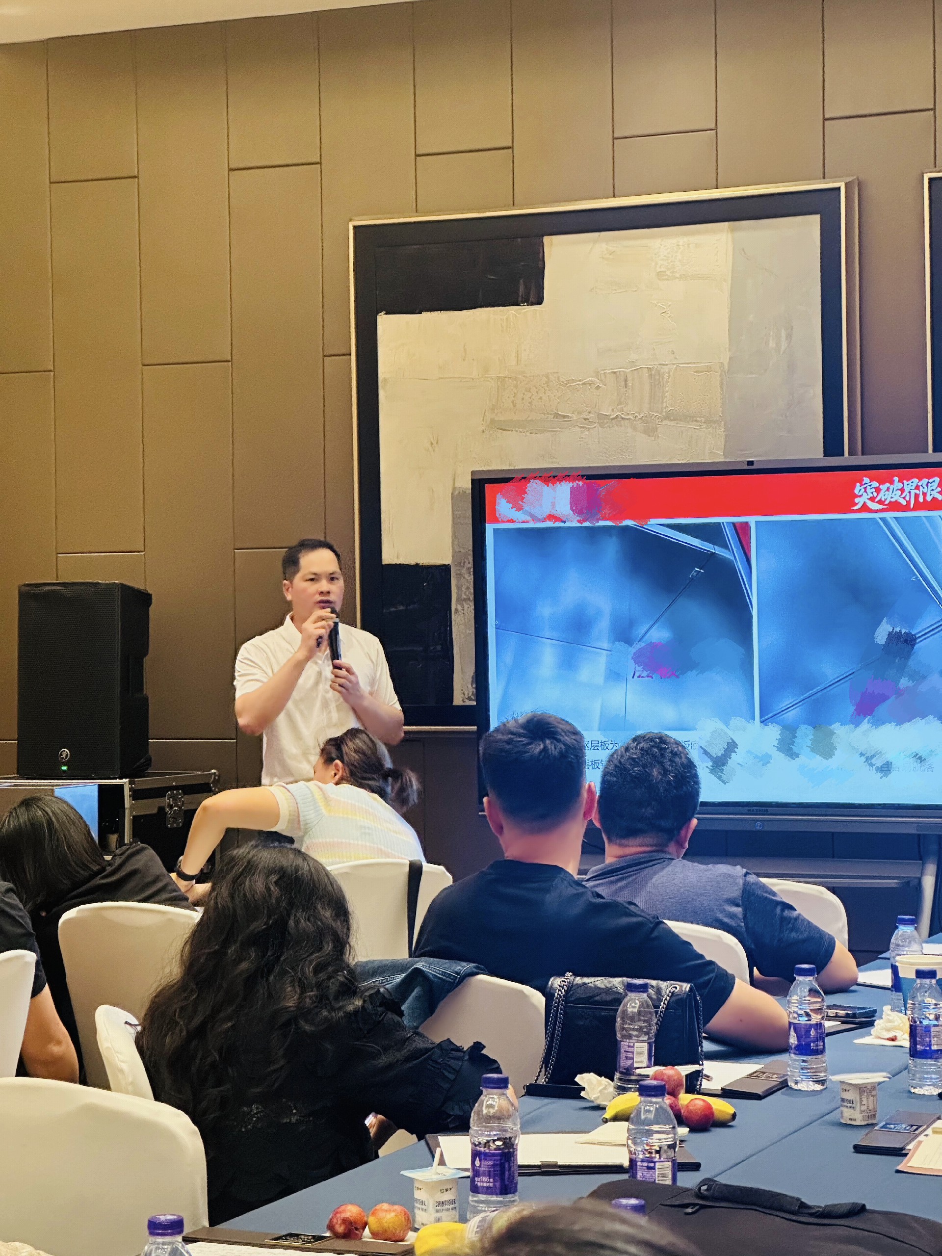 会议现场,法迪奥运营总监潘志伟针对楼盘推广、团队配合、套餐方案和成交工具进行了剖析。