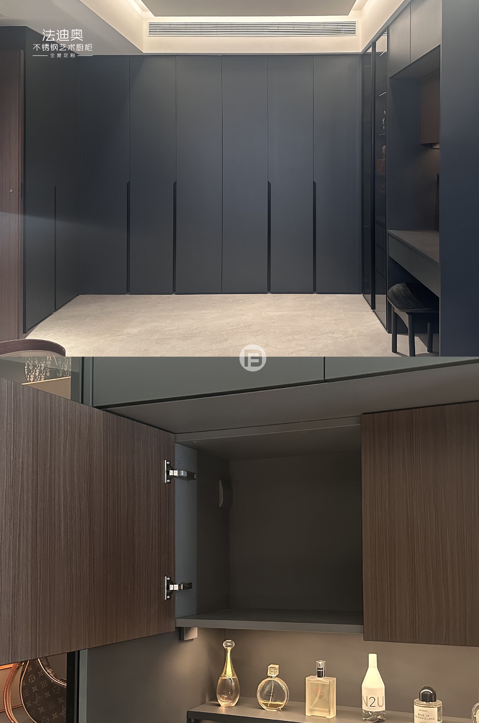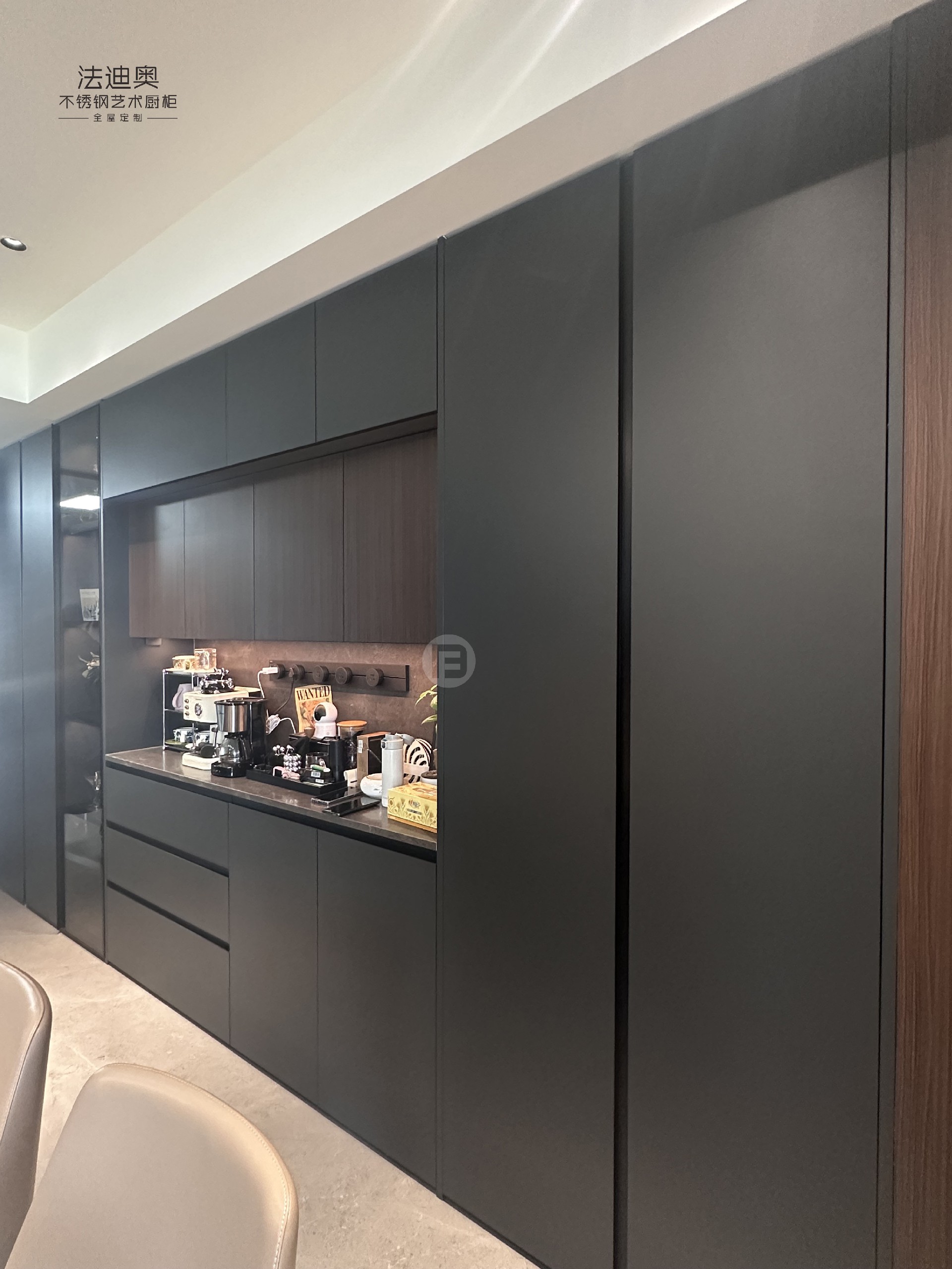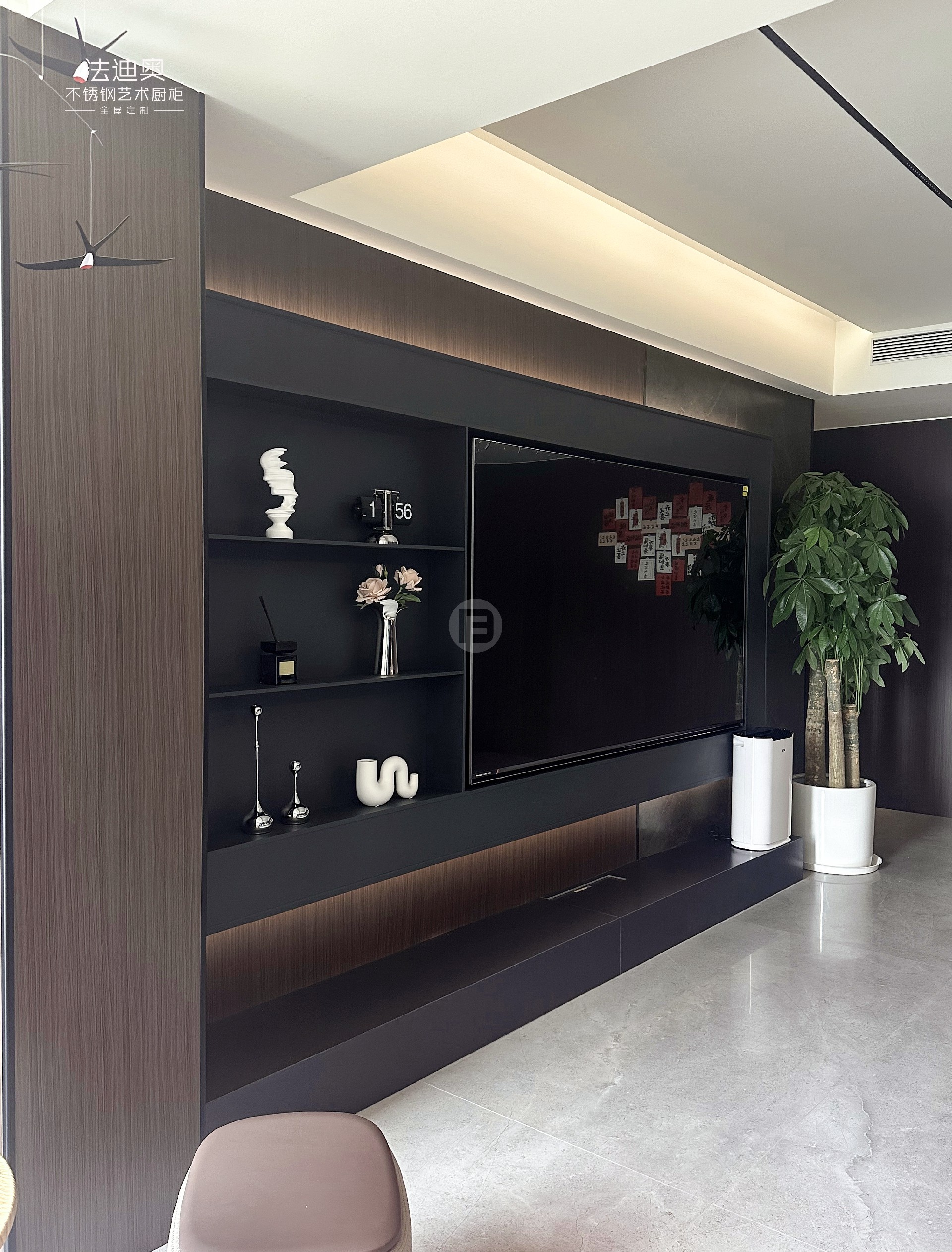 案例地标:湖南长沙·北辰瀚江府定制产品:法迪奥理想家系列-不锈钢电视柜/护墙板/餐边柜/橱柜/衣柜