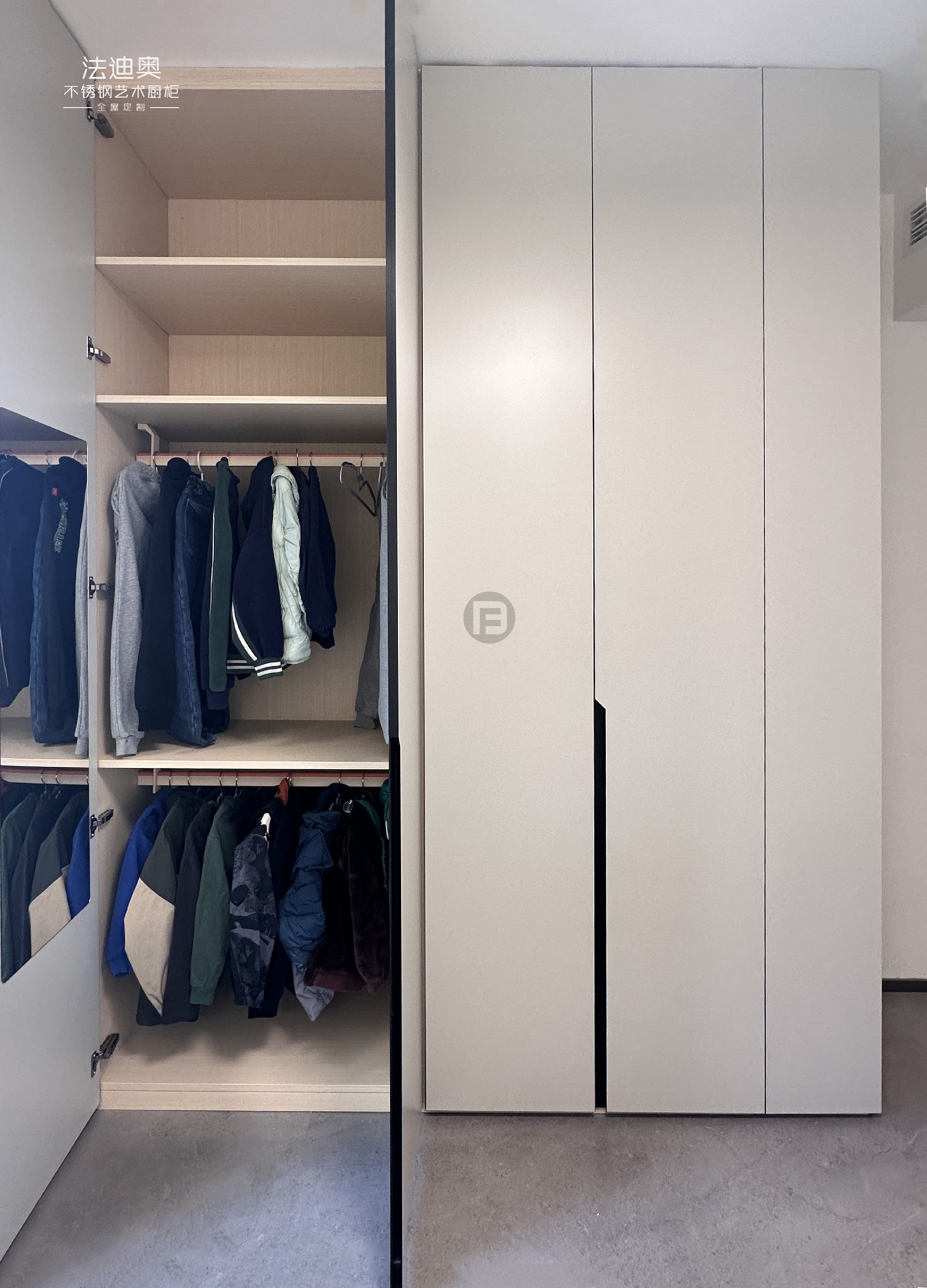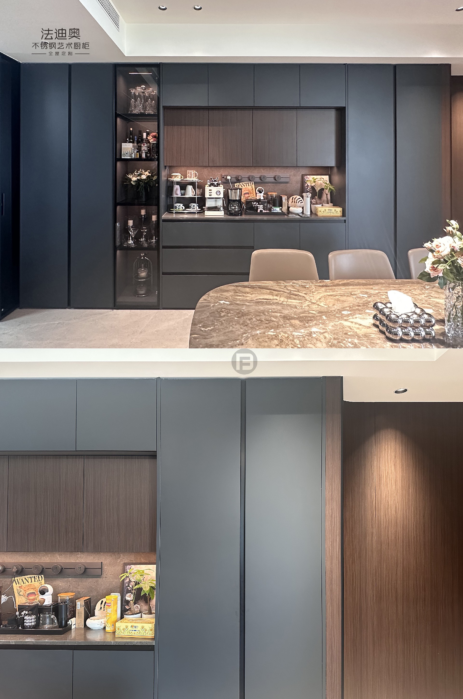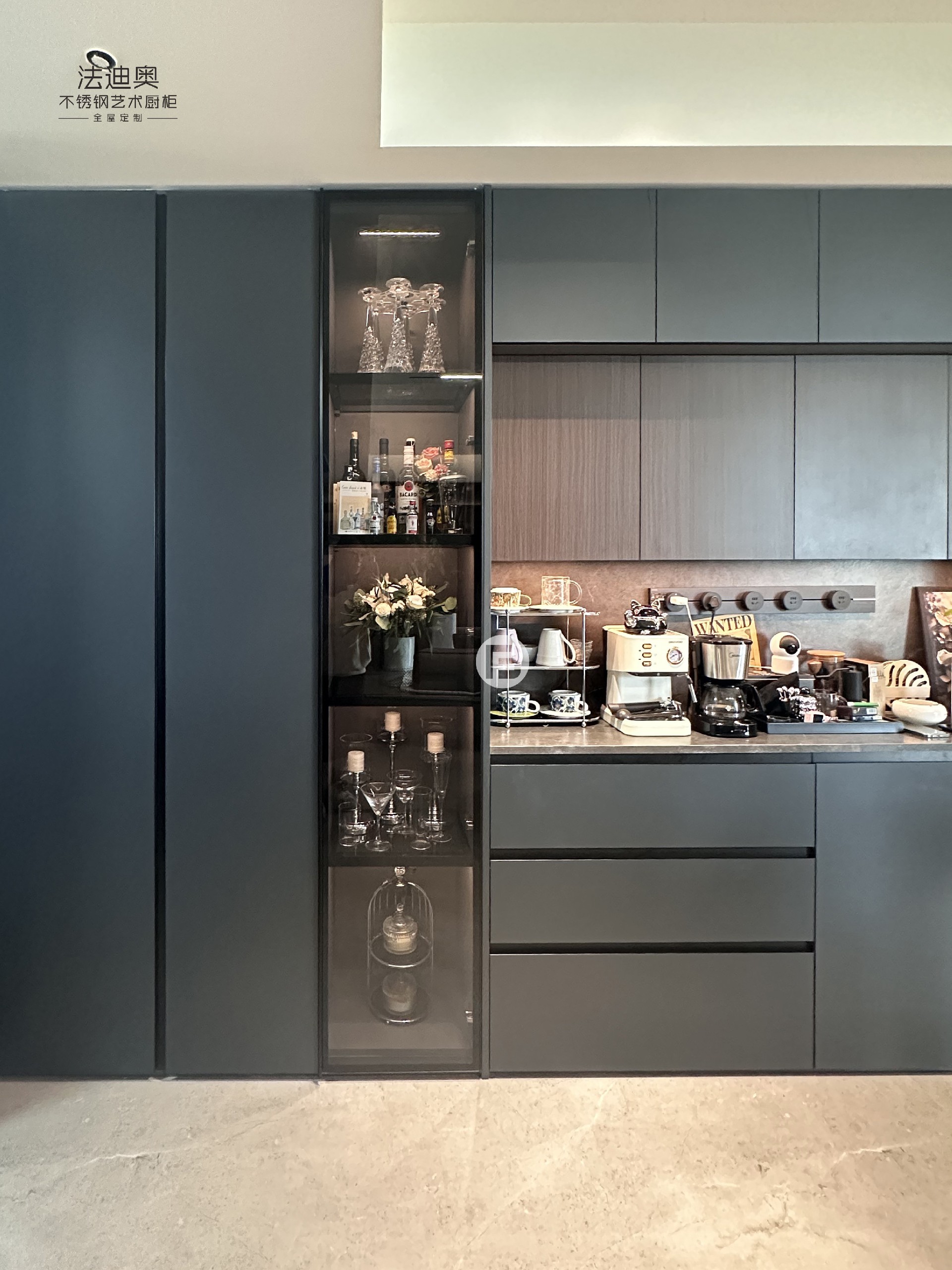 案例地标:湖南长沙·北辰瀚江府定制产品:法迪奥理想家系列-不锈钢电视柜/护墙板/餐边柜/橱柜/衣柜